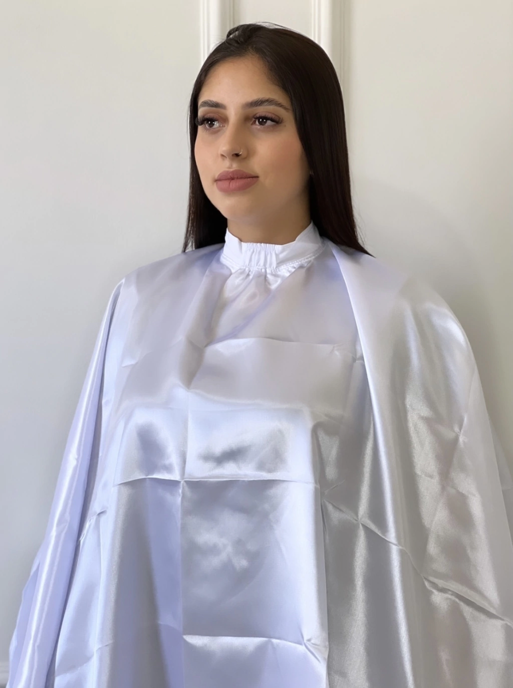 CAPA DE CORTE DE CETIM PARA CABELELEIROS