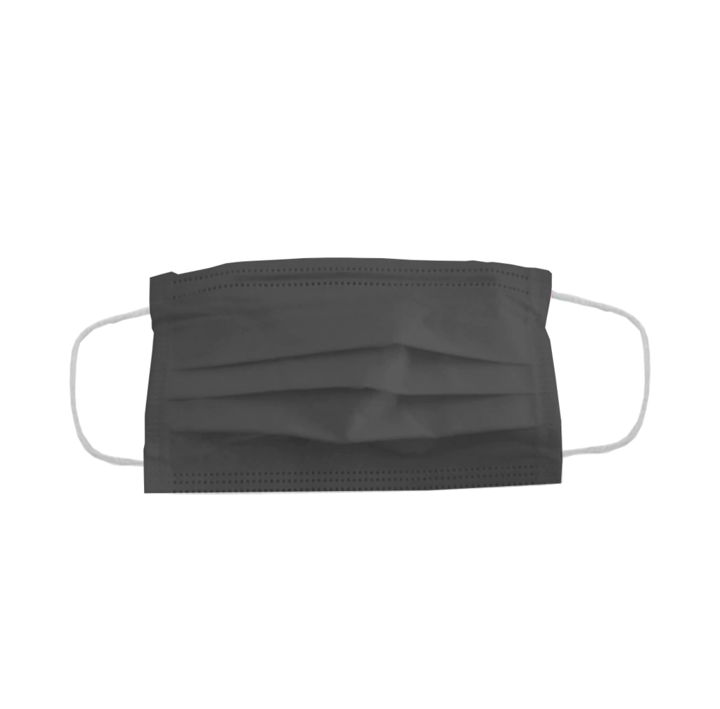 Mascaras triplas descartáveis com elástico confeccionadas no estilo retangular, possuem três camadas com acabamento em toda a extremidade por soldagem eletrônica pontilhada sendo duas camadas externas e internas em TNT e uma camada de filtro mettblown. Eficiência de filtração Bacteriana EFB de 95, no centro da máscara existem três pregas que se ajustam ao aumento ou diminuição do tamanho, quando inteiramente aberta estas pregas protegem desde o topo do nariz até a cobertura total do queixo cobrindo a maioria das conformações faciais conhecidas e mantendo as protegidas